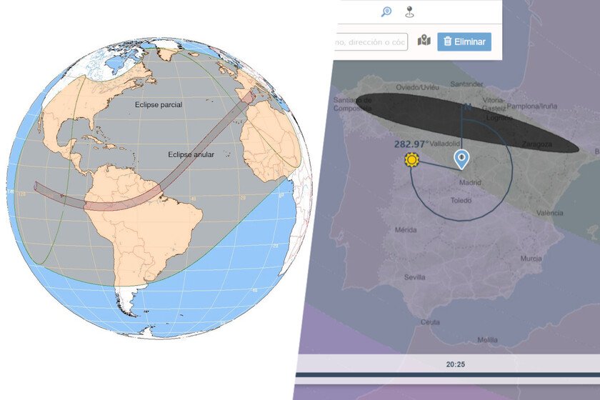 A complete guide. IGN’s work offers us more than a visualizer, it constitutes a small guide to not miss key details when enjoying these eclipses. In addition to the maps, these guides include animations that explain, for example, how the shadow of our moon moves on the surface of the globe.